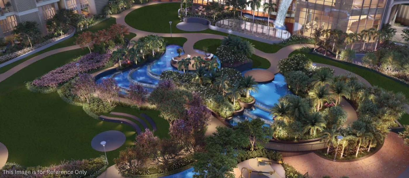 • Landscaped Gardens: Beautifully designed green spaces with jogging tracks and meditation zones for tranquility.